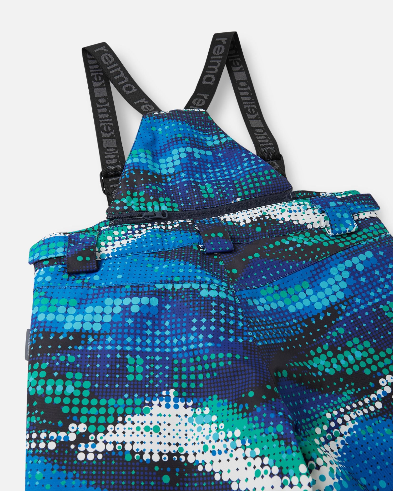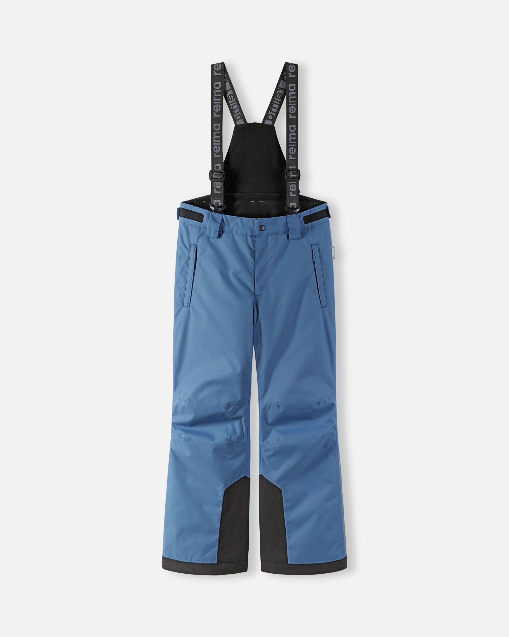 Overview: ReimaTec kids' ski pants full of functional features! All the seams of this water and wind blocking pair are sealed waterproof. Straight fit. These cozy kids' ski pants are exactly what young skiers need: All the seams have been sealed for a waterproof finish and the material blocks wind. It's durable and breathable too, preventing kids from feeling clammy. The adjustable and detachable suspenders help make sure that the pants stay up and together with the adjustable waist, they guarantee a great fit. Many Reima ski jackets can be attached to the back belt loop of these relaxed ReimaTec pants. Snowlocks at the hems prevent cold powder from seeping in, and a snap attachment prevents the leg end from being stepped on. We've also added durable reinforcements to the legs, and they're designed to fit perfectly on top of snowboarding shoes. These straight-cut kids' winter pants are finished with two zip pockets. Overview: All seams sealed waterproof | Durable material | Very durable reinforcements | Straight fit | Two zip pockets | Adjustable and detachable elastic suspenders | Adjustable waist | Adjustable snow locks at leg ends | To keep the leg end up, snap it to the snow lock Sustainability: Contains certified recycled fibers | PFAS free water and dirt repellent finish BIONIC-FINISH??ECO | bluesign?? approved main material, lining and insulation | 100% recycled insulation Performance: Water column > 12 000 mm | All seams taped | Durable > 30 000 Martindale | Warm insulation | Breathability > 7 000 g/m2/24 h | Windproof | Water and dirt repellent | Ski features Main material: 2440 ReimaTec Pro BS GRS Main material: 100% polyester - recycled, polyurethane coating Main material: Waterpilar 12000 Main material: Abrasion resistance 40000 Main material: Breathability 7000 Reinforcement material: 2502 ReimaTec Duraplus BS GRS Reinforcement material: 59% polyamide - recycled, 41% polyamide, polyurethane lamination Reinforcement material: Waterpilar 12000 Reinforcement material: Abrasion resistance 80000 Reinforcement material: Breathability 7000 Lining material: 1026C PES taffeta w/ cire BS GRS Lining material: 55% polyester - recycled, 45% polyester Insulation: 1975-100 Fellex?? Eco flex BS GRS, 100g Insulation: 90% polyester - recycled Repreve, 10% polyester - recycled